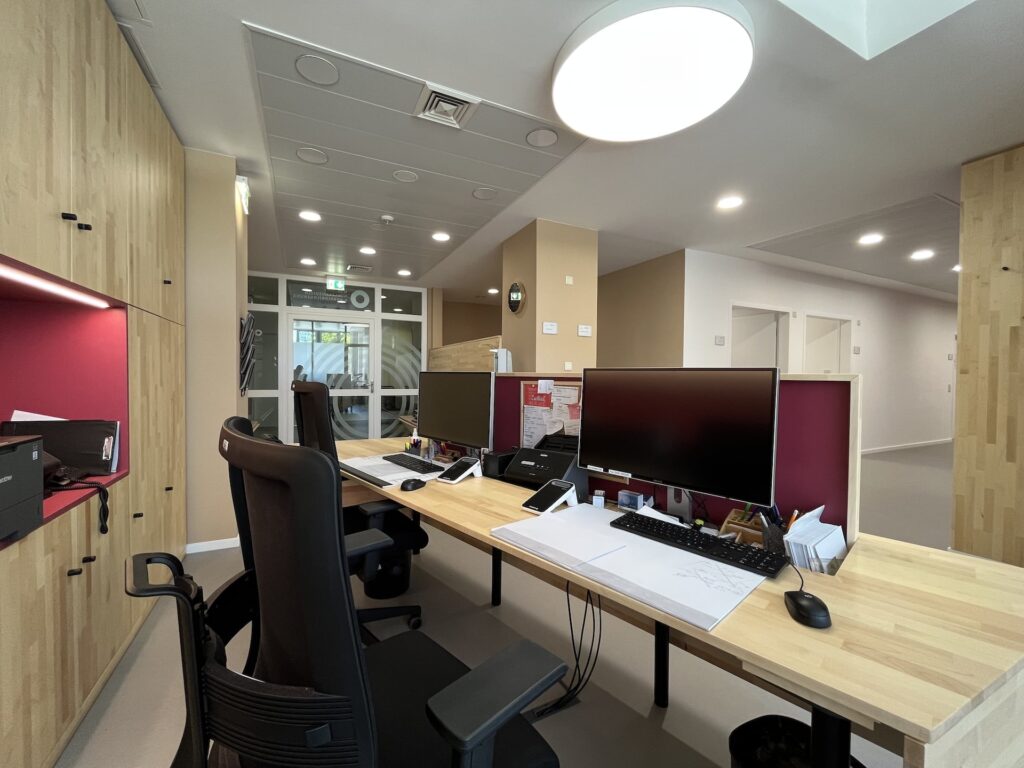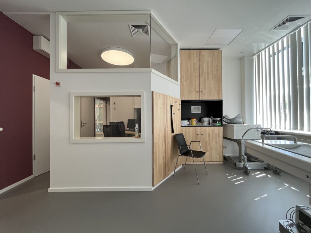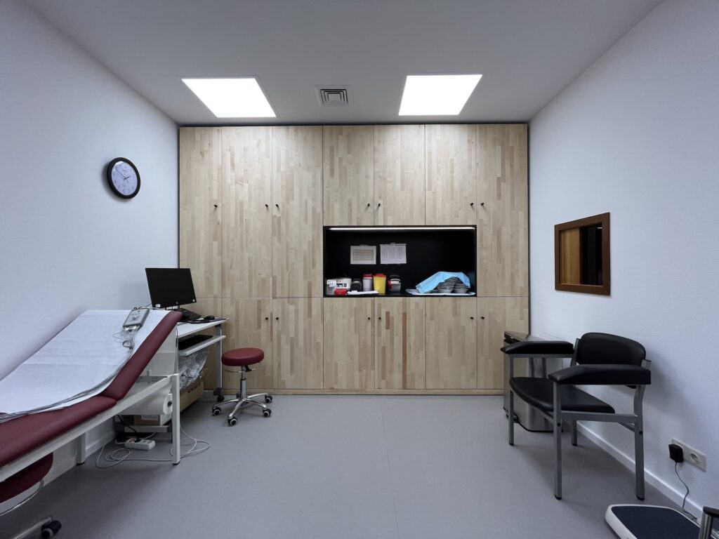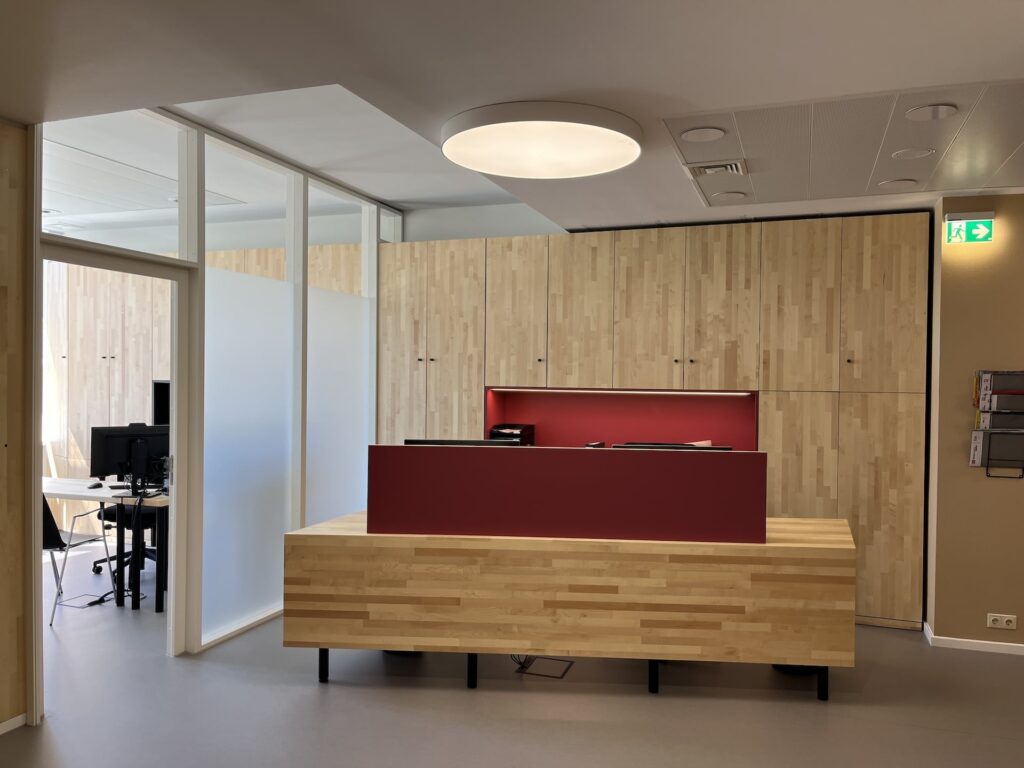#Arztpraxis #Praxissanierung #Nuklearmedizinische Praxis #Carl-von-Basedow-Klinikum #Strahlenschutz #Möbel #Massivholz #Bioboden #Pflanzenöl Fußboden robust #Ahorn keilgezinkt geölt #Kautschuk #Tischlerarbeit #Farbkonzept #Beleuchtungskonzept #Counter #Bildschirmarbeitsplätze #Rezeption #Empfang #HOAI LPH 1, 2, 3, 5, 7, 8
